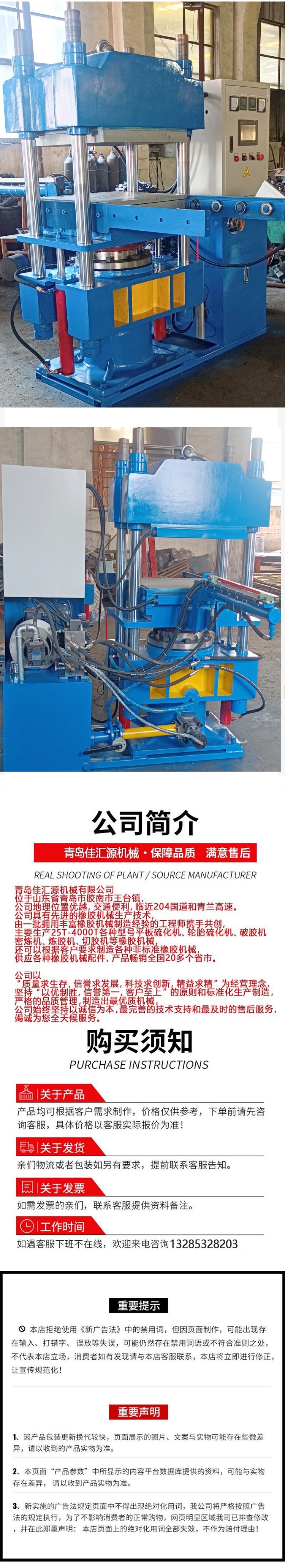 | 產(chǎn)品名稱:100噸快速升降自動推拉平板硫化機 | |
